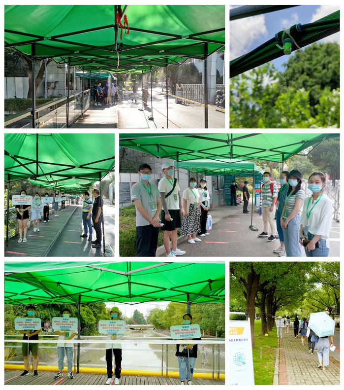 考前,校长办公会召开专题会议,研究考试组织和保障方案。学校办公室牵头,防疫专班、44118太阳成城、后勤服务中心(含校医院)、保卫处、教务处、资产与实验室管理处等多个部门多次召开会议,考察确定考生进场行进路线,协调落实物资保障,制定优化防疫防暑方案和自学考试应急预案。面对防疫和防暑双重压力,学校各部门通力合作,设置双通道双环节检查关卡;在入口处搭建凉棚,增加喷雾装置;在非空调教室放置冰块;加强标识提示和志愿者引导;针对不符合防疫规定的考生增加考前短信友情提醒;加设备考专用教室。
