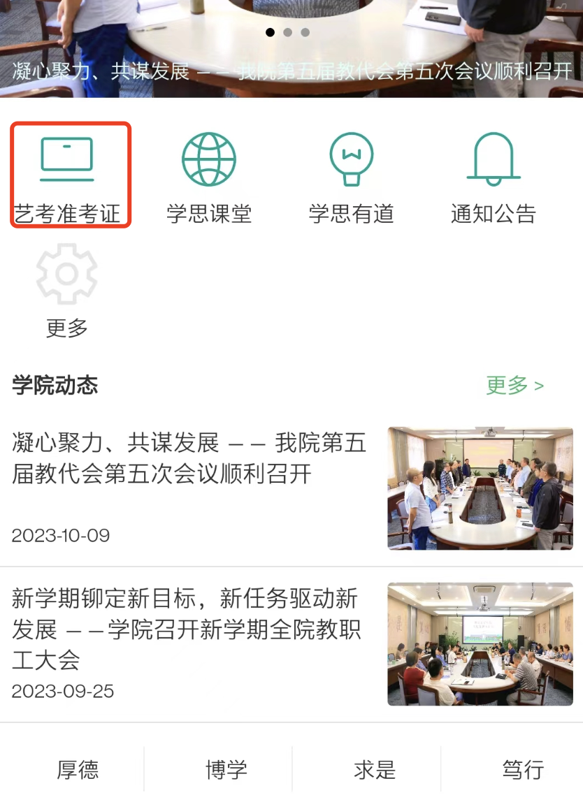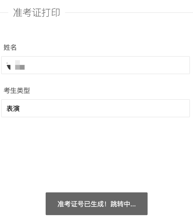 “艺考准考证”栏目,输入本人手机号码,接收准考证后自行打印
