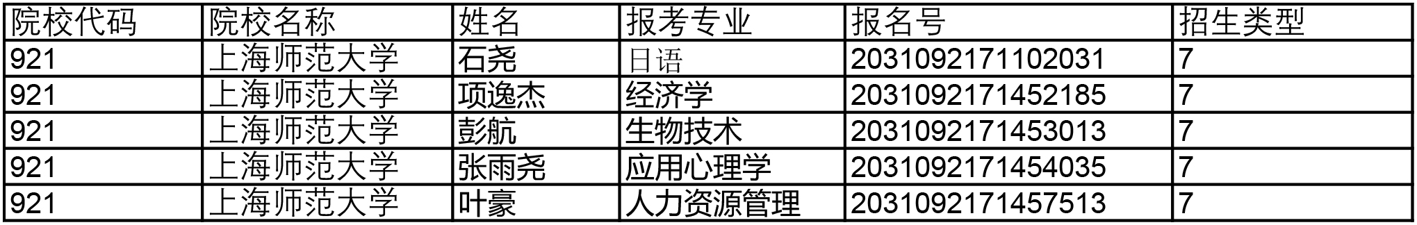 免试生名单: