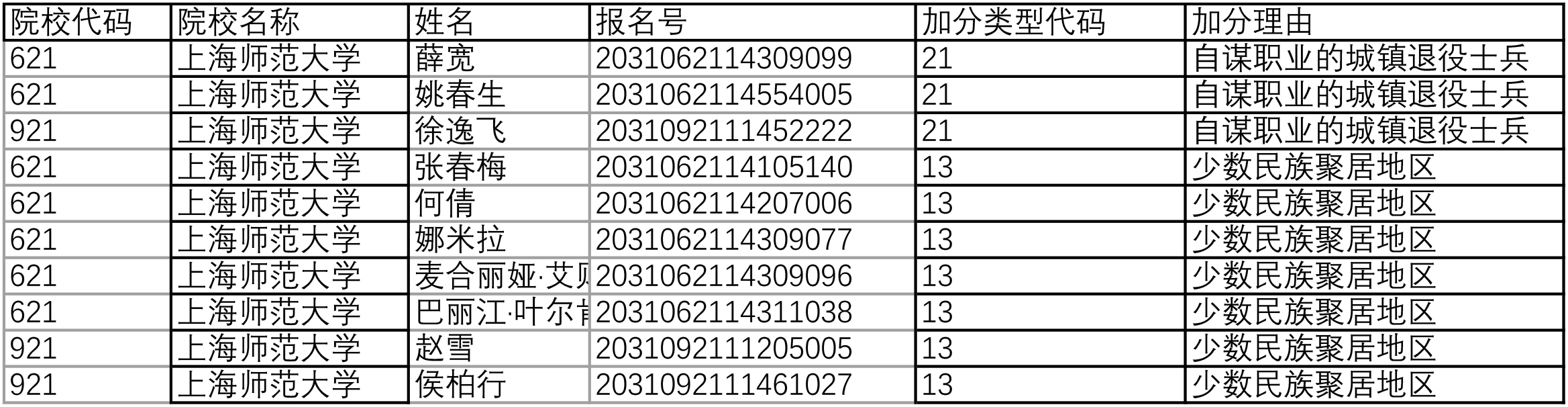 加分名单: