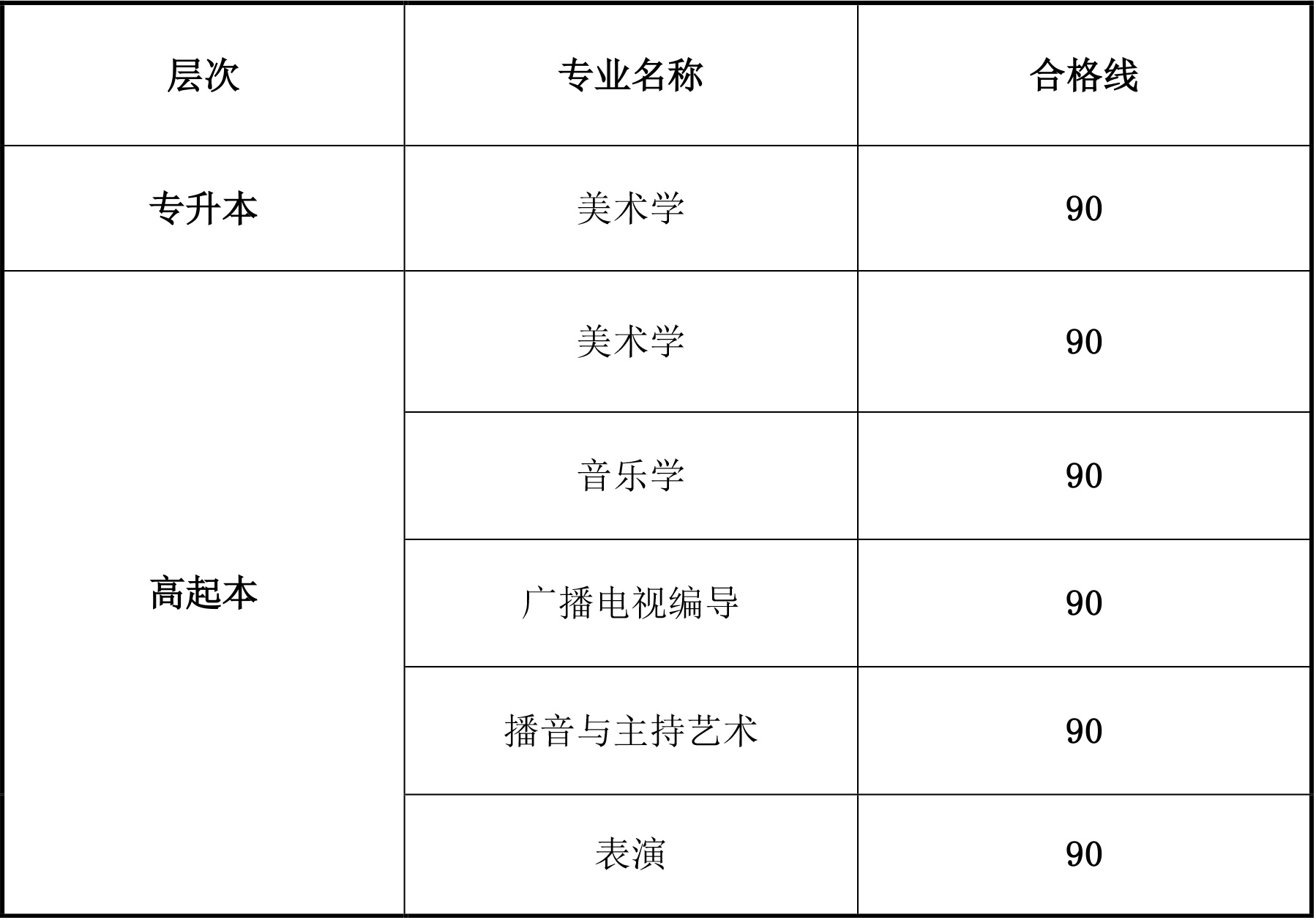 根据成人高等教育招生领导小组决定,2020年太阳官网成人高校艺术类专业招生考试,各科合格分数线如下: