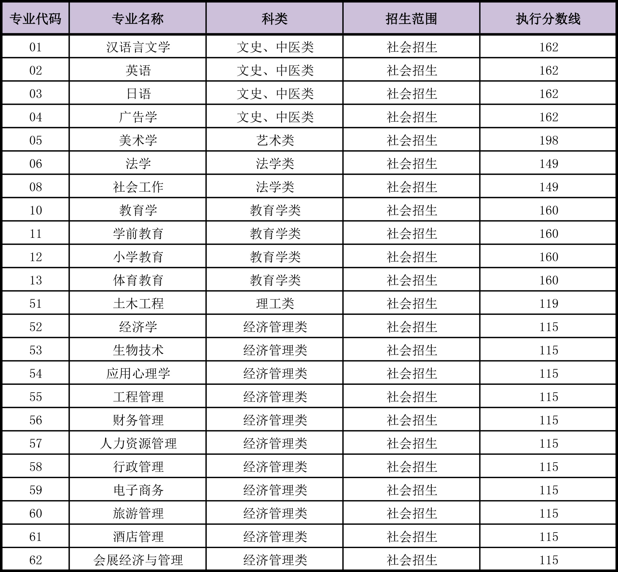 2020年太阳官网成人高等教育招生录取执行分数线如下: