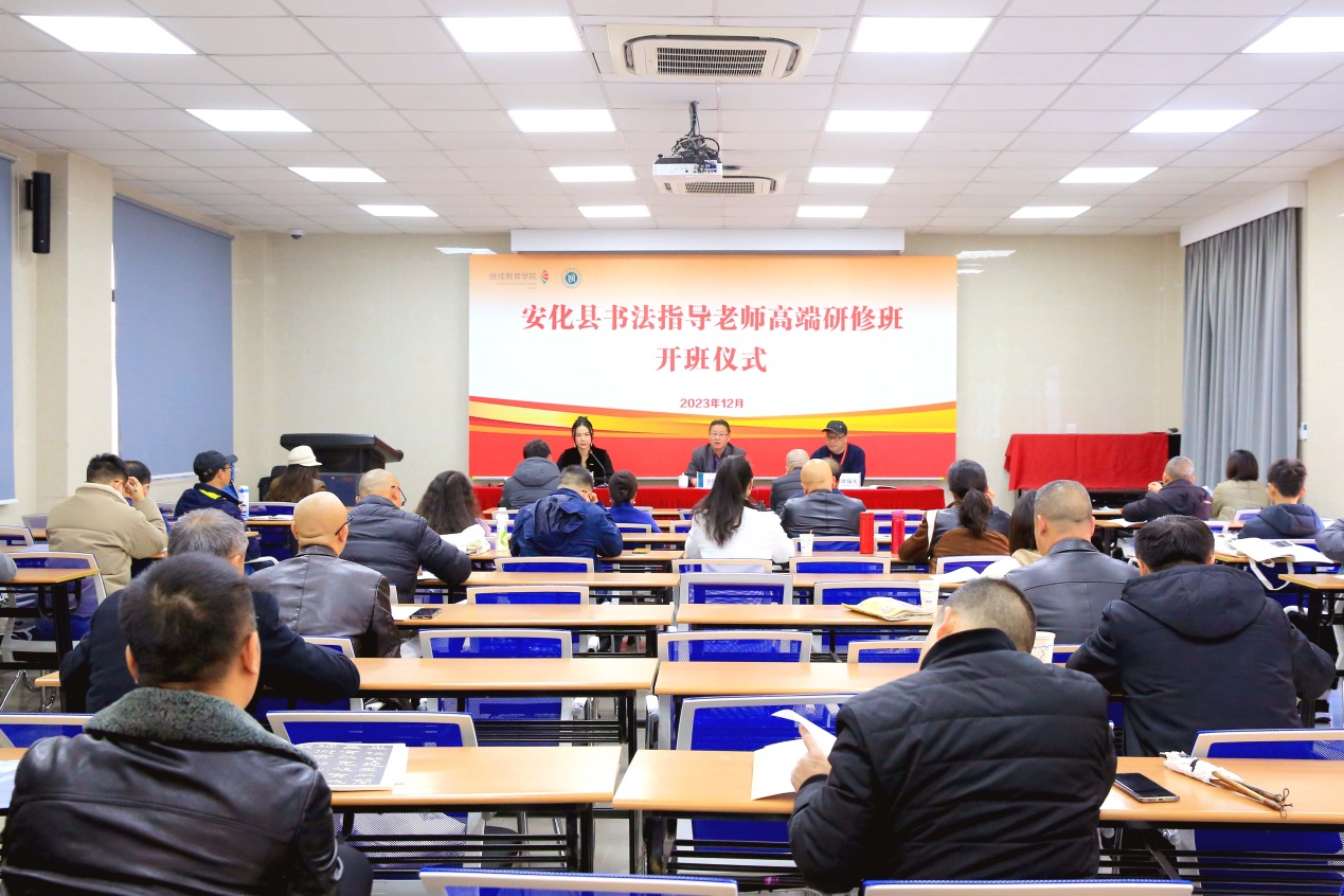 为进一步传承祖国优秀文化,推进素质教育深入开展,提高学生的汉字书写能力,发挥书法艺术特有的翰墨育人作用,提升中小学书法专业师资水平,受湖南省益阳市安化县教育局委托,“湖南省益阳市安化县书法指导老师高端研修班”于12月2日至8日在我院顺利举办,共有40名书法教师参加研修。