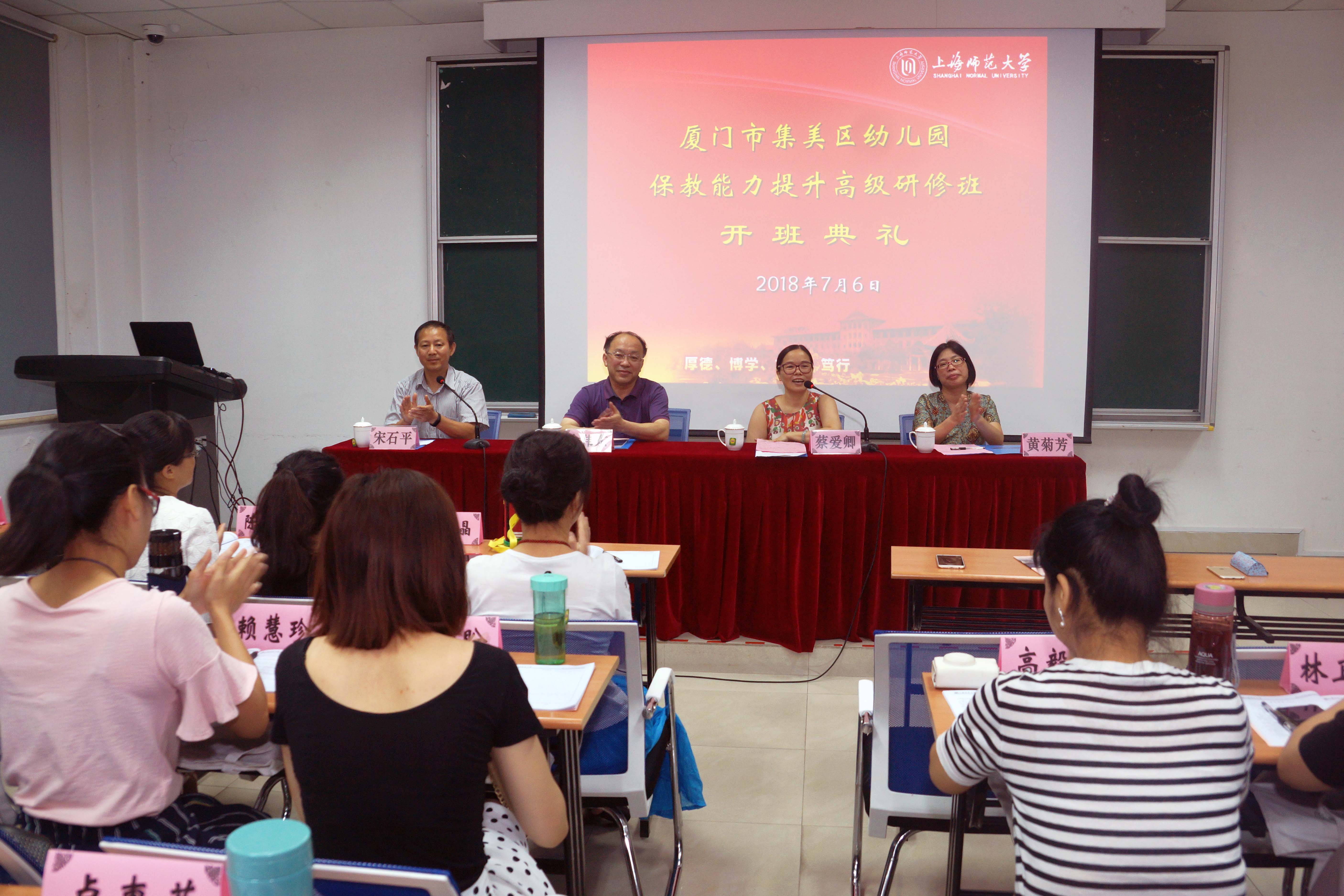 厦门市集美区教育局幼教专干蔡爱卿、集美区教师进修学校幼教教研员黄菊芳、44118太阳成城院长俞伟东出席开班典礼,副院长宋石平主持开班典礼。