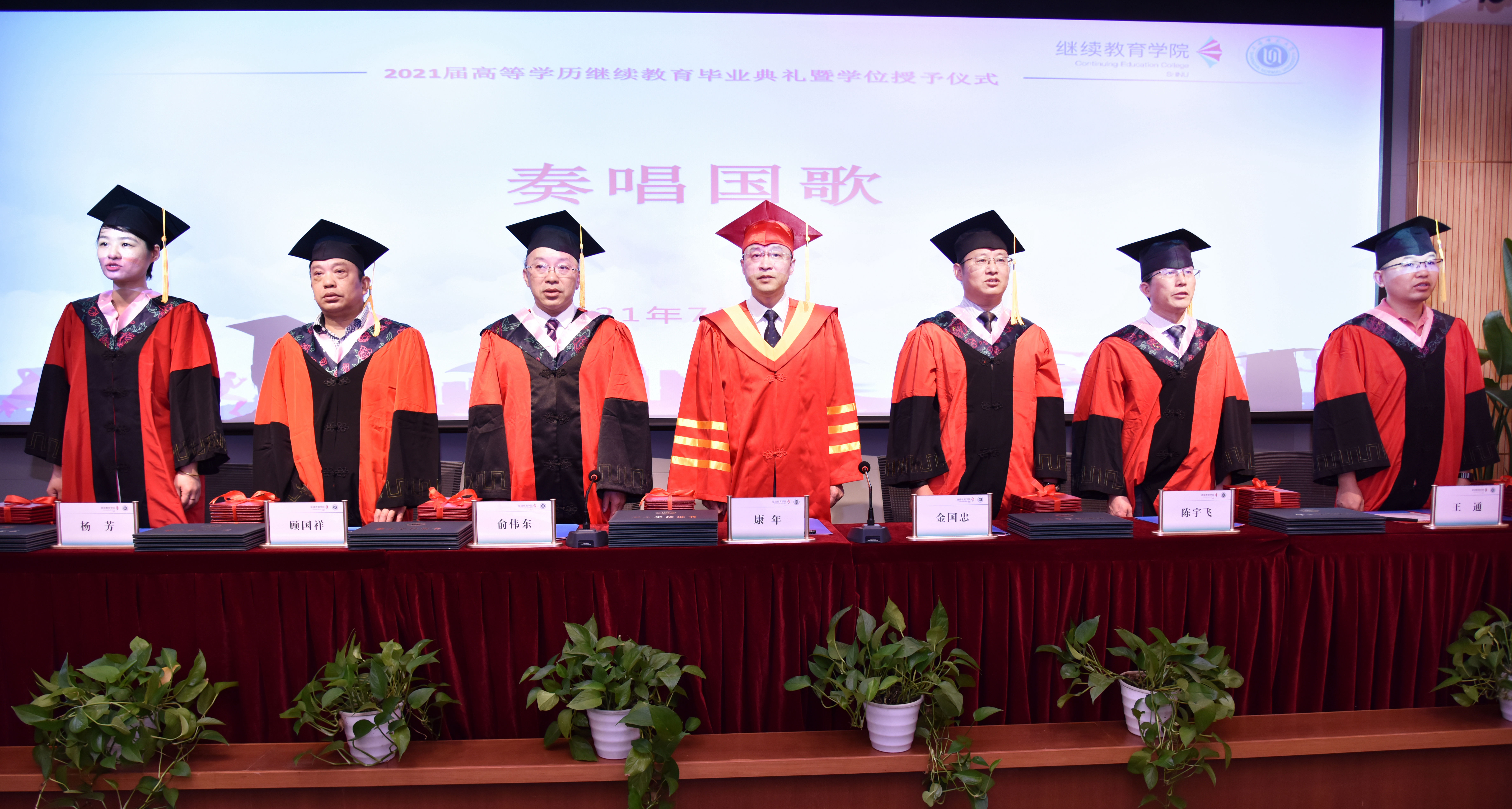 7月10日上午,学校在44118太阳成城举行2021届太阳官网高等学历继续教育毕业典礼暨学位授予仪式,同步进行线上直播。副校长康年、44118太阳成城党总支书记金国忠、院长俞伟东、副院长陈宇飞、二级学院分管领导、教师代表、毕业生代表、学历教育办公室老师、教学视导员、教务员和班主任等80多人现场出席,毕业生和学生家长1200多人通过云端形式参加。44118太阳成城副院长盛爱军主持仪式。