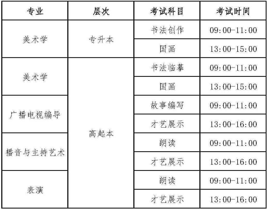 2021年太阳官网成招艺术类专业考试安排如下: