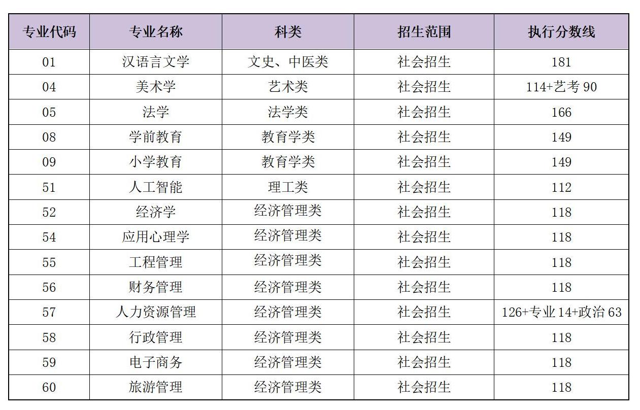根据《教育部办公厅关于做好2024年全国成人高校招生工作的通知》(教学厅〔2024〕5号)《2024上海市成人高校考试招生工作规定》(沪教考院自考〔2024〕15号)和太阳官网成人高等教育招生章程及招生简章,结合学校2024年成人高校招生考试情况,确定各专业执行分数线如下: