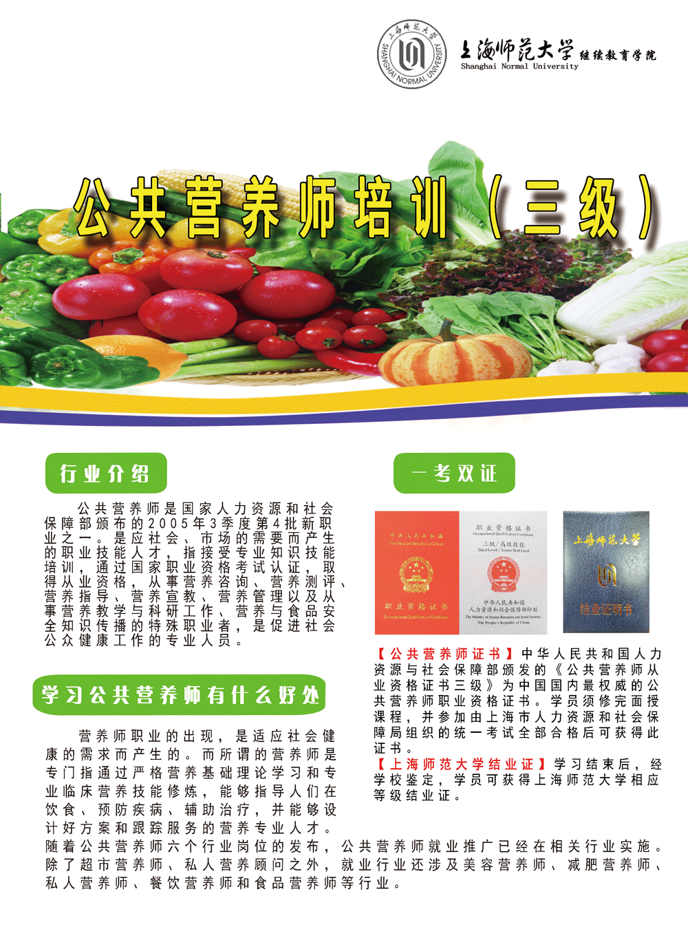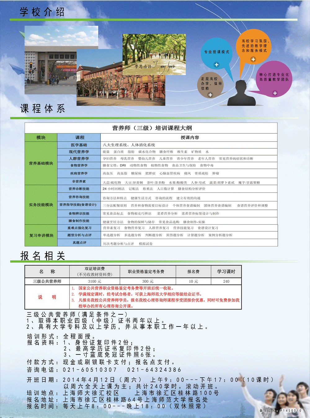 2014年4月国家公共营养师(三级)双证课程招生简章