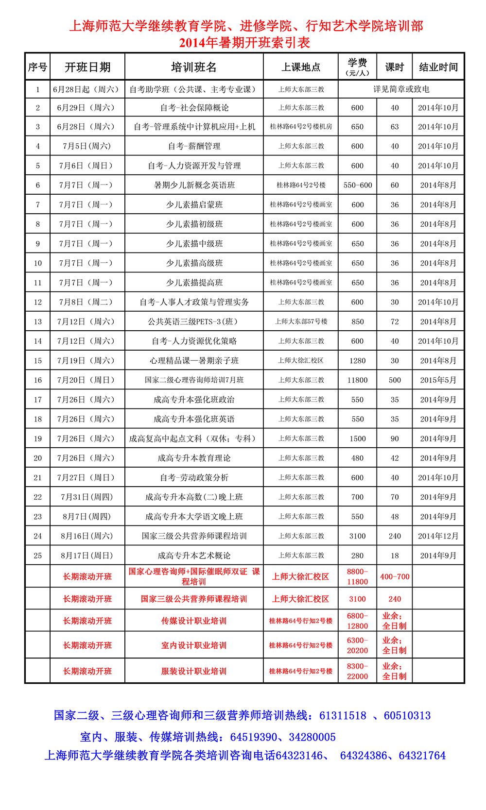 44118太阳成城培训部2014年暑期开班索引