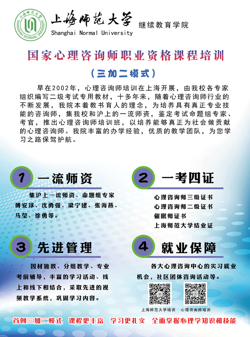 2014年12月国家心理咨询师(三+二级)职业资格课程培训