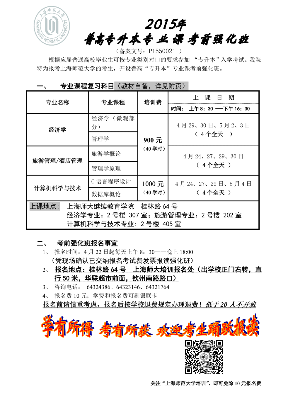 2015年普高专升本专业课考前辅导班招生简章