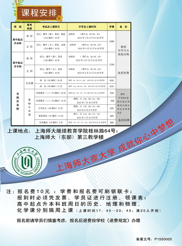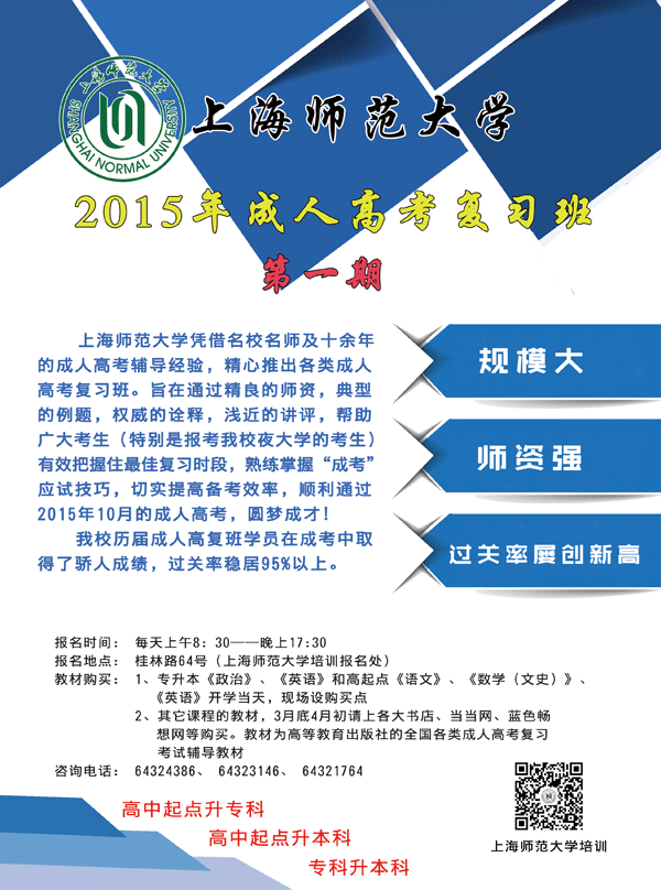 2015年第一期成人高考复习班招生简章(高起点;专升本)