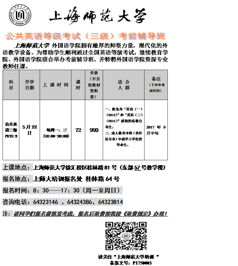 2017年5月公共英语等级考试(三级)考前辅导班