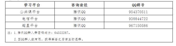 5.为保障线上学习顺利,学校成教管理团队将与各平台技术团队一道,提供咨询服务,方式如下: