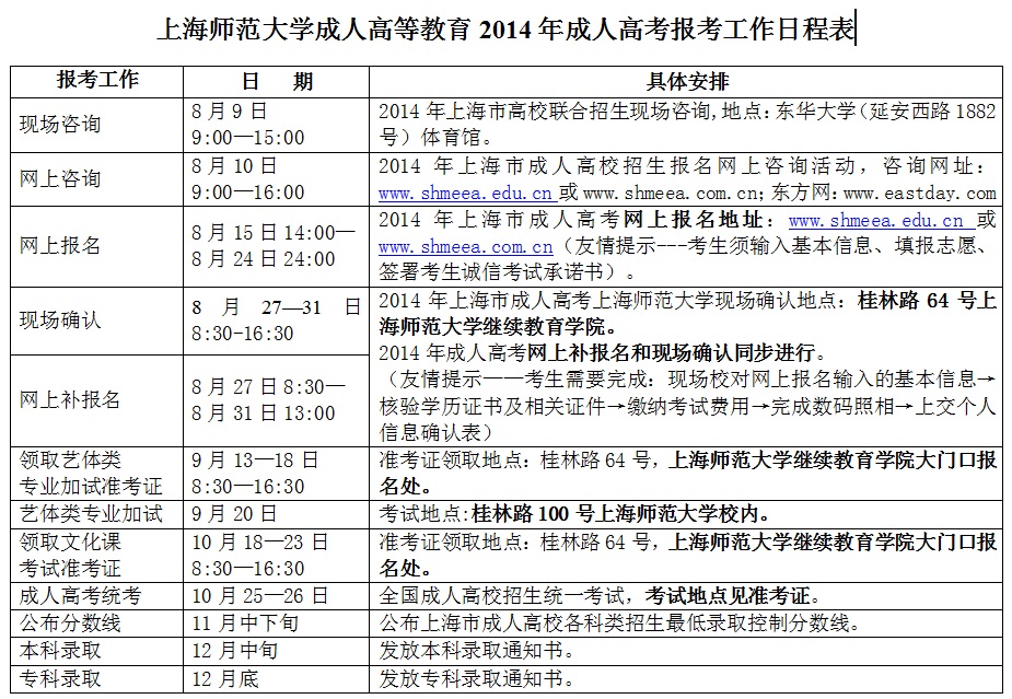 太阳官网成人高等教育2014年成人高考报考工作日程表