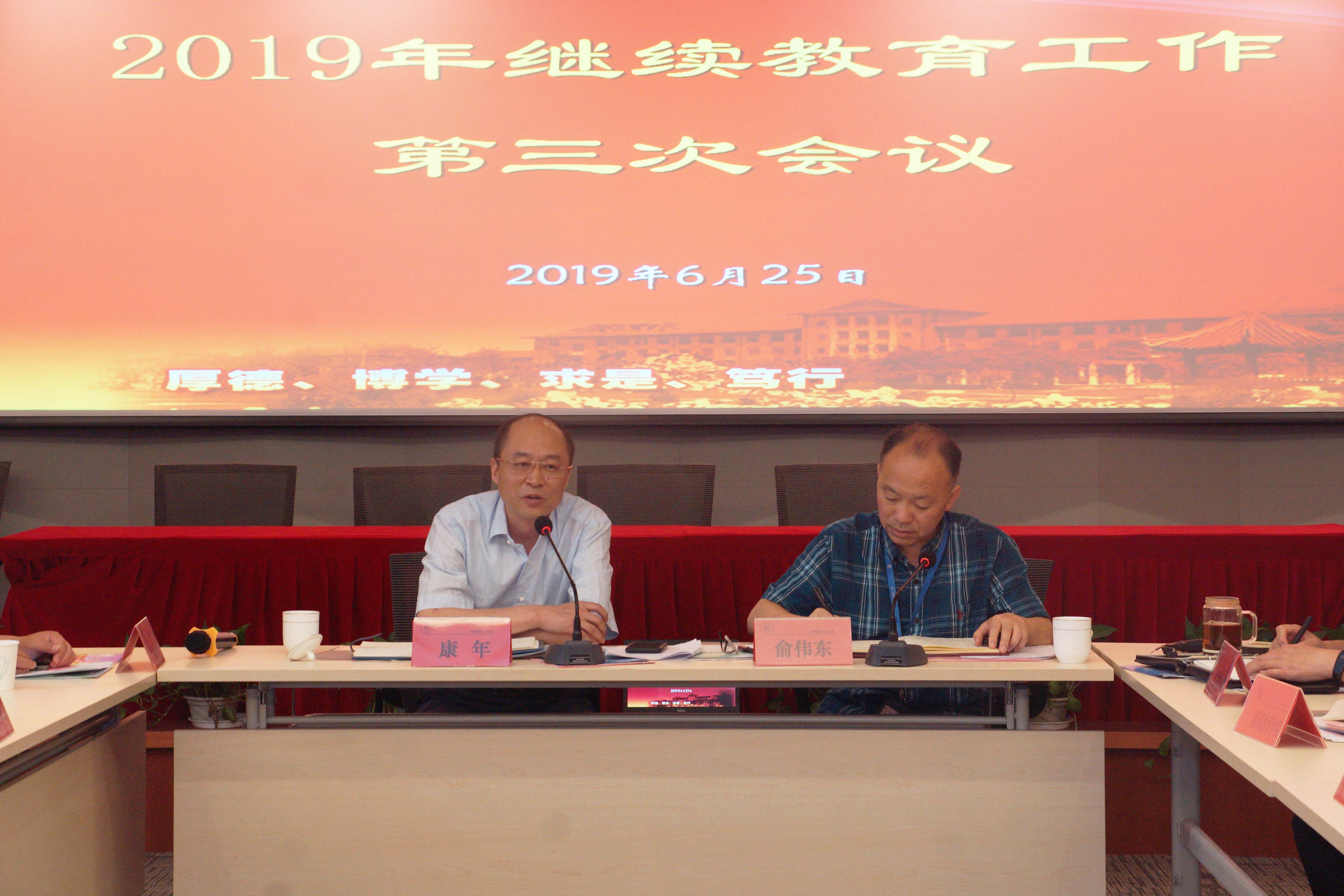 6月25日上午“2019年学校继续教育工作第三次会议”在44118太阳成城召开了,副校长康年、二级学院分管领导和44118太阳成城领导干部参加会议,44118太阳成城院长俞伟东主持会议。