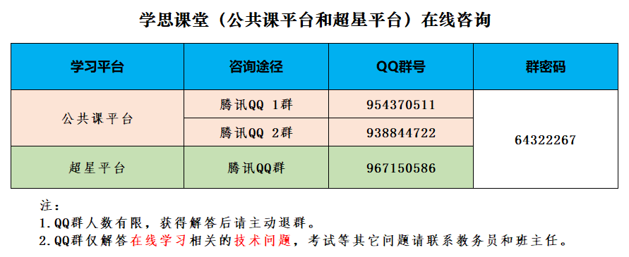为保障线上学习顺利,学校成教管理团队将与平台技术团队加强咨询服务,方式如下: