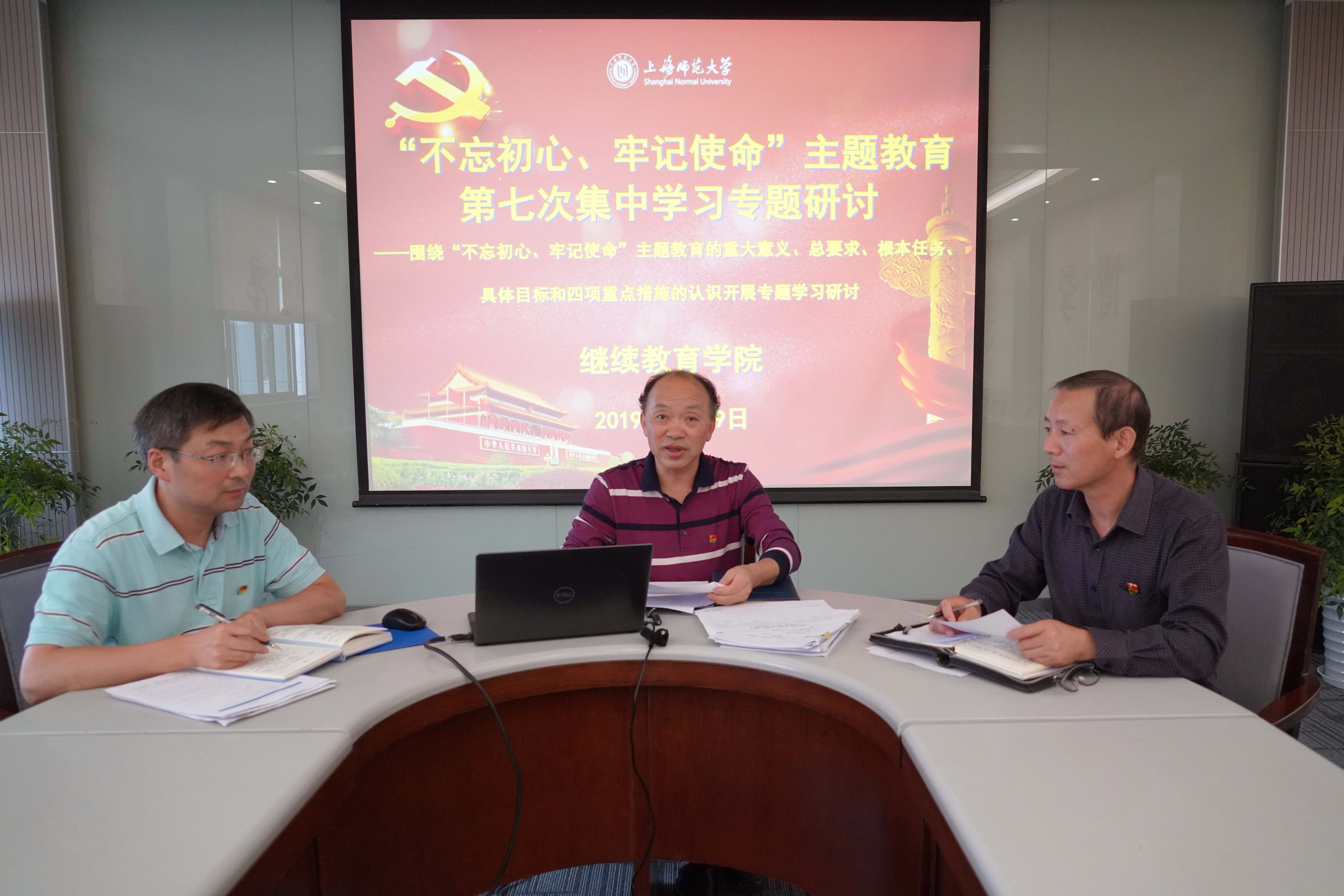 俞伟东同志强调,中国共产党人的初心和使命是“为中国人民谋幸福,为中华民族谋复兴”。5月31日,习近平总书记发表重要讲话,深刻阐述开展主题教育的重大意义,深刻阐明主题教育的总要求、根本任务、重点举措和具体目标,为全党开展主题教育指明了正确方向、提供了根本遵循,是新时代加强党的建设的纲领性文献。在学院开展“不忘初心、牢记使命”主题教育工作中,一定要提高站位,深刻认识开展“不忘初心、牢记使命”主题教育的重大意义;一定要把握要求,全力确保“不忘初心、牢记使命”主题教育取得实效;一定要强化责任,扎实推进“不忘初心、牢记使命”主题教育有力有序有效开展。要从党和国家事业发展全局的高度,深刻认识开展这次主题教育的重大意义,切实把思想和行动统一到党中央的部署上来,以强烈的政治责任感、历史使命感和现实紧迫感,切实抓好主题教育各项工作。结合学校高水平大学建设的目标要求,推进继续教育转型发展,坚持更高的标准,勇担育人责任,推动改革发展稳定各项工作上新台阶,以事业发展成就来检验主题教育成效。