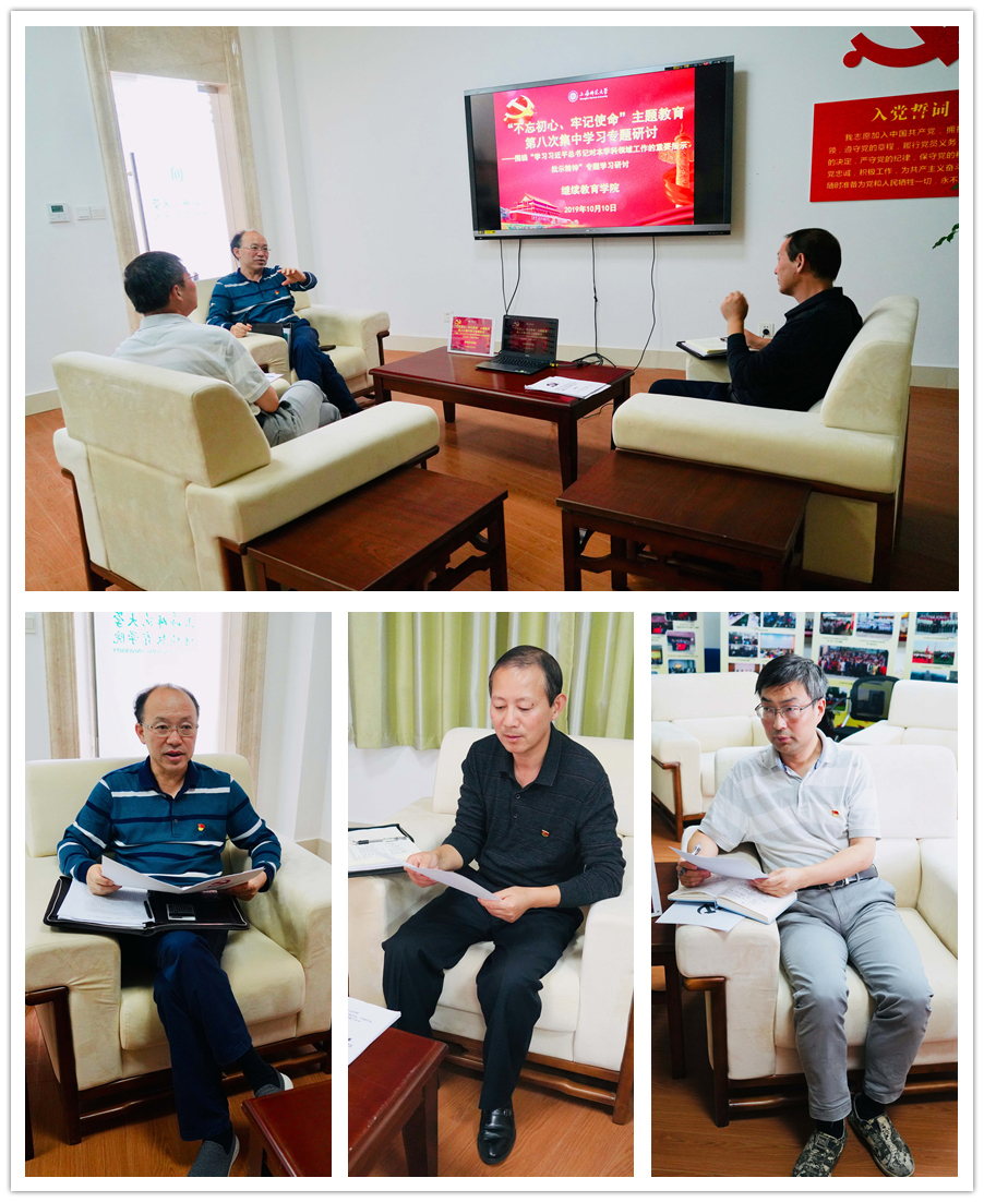 10月10日上午,44118太阳成城在学院1号楼105室举行“不忘初心、牢记使命”主题教育第八次集中学习研讨,学习习近平总书记对本学科领域工作的重要指示批示精神,院长俞伟东、副院长宋石平作重点发言。 俞伟东同志强调,党的十八大以来,习近平同志为核心的党中央高度重视教育事业在坚持和发展中国特色社会主义战略全局中的地位和作用,把教育摆在优先发展战略位置,全面加强党对教育工作的领导。办人民满意的教育,首先要加强党对教育工作的全面领导。坚定不移维护党中央权威和集中统一领导,以习近平新时代中国特色社会主义思想为指导,准确把握教育事业发展面临的新形势新任务,要求教育工作者在政治立场、政治方向、政治原则、政治道路上同党中央保持高度一致。培养德智体美劳全面发展社会主义建设者和接班人,归根到底,就是要坚持落实立德树人的根本任务,这是教育事业发展必须始终牢牢抓住的灵魂。把培养社会主义建设者和接班人作为根本任务,培养一代又一代拥护中国共产党领导和我国社会主义制度、立志为中国特色社会主义奋斗终身的有用人才,加快中国从教育大国向教育强国迈进的步伐,为实现中华民族伟大复兴的中国梦奠定坚强动力和扎实基础。