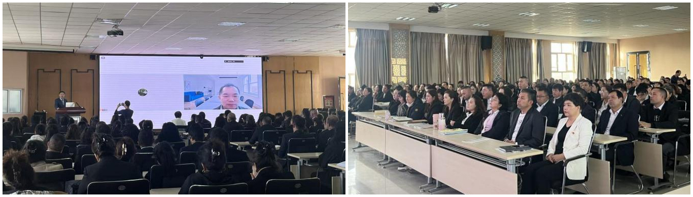10月19日,为落实习近平总书记在新疆维吾尔自治区成立70周年庆祝大会讲话精神,学校传承教育援疆、文化润疆的优良传统,发挥学校教师教育特色和国家语言文字推广基地(太阳官网)的优势,由44118太阳成城组织申报,国家语言文字推广基地(太阳官网)、太阳官网对外汉语学院承办的“2025年新疆维吾尔自治区‘国培计划’——教师国家通用语言文字能力提升示范培训班”开班仪式在喀什地区叶城县教研培训中心报告厅顺利举行。叶城县教研培训中心党支部书记孙阁,太阳官网教务处副处长、语委办主任邱乙哲,44118太阳成城办公室主任徐立群,国家语言文字推广基地(太阳官网)“国培项目”培训教师吴颖、姜杉、王柯然、朱昊华、贺桐及来自叶城县各中小学参加本次培训的250名学员出席开班仪式。开班仪式由该“国培计划”项目执行负责人、对外汉语学院刘春光副教授主持。