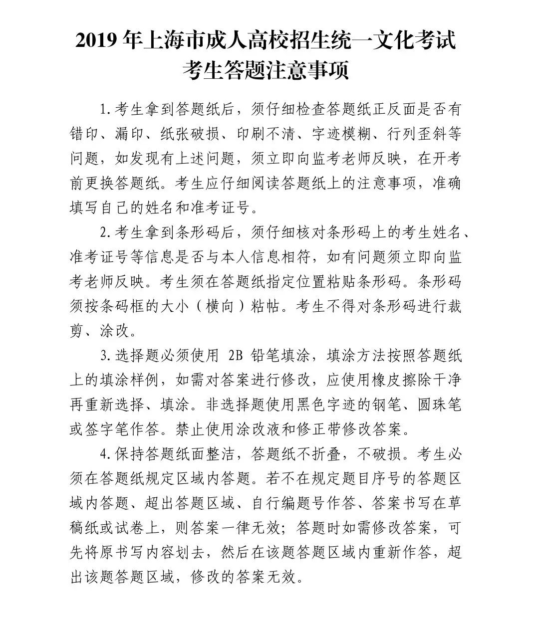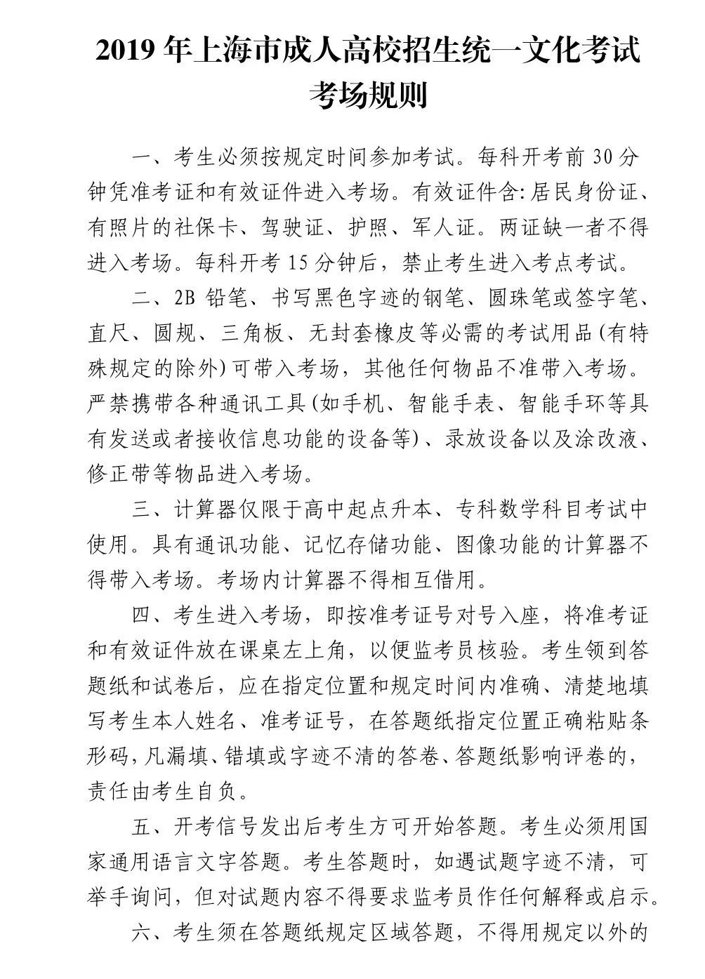 2019年上海市成人高校招生统一文化考试将于10月26日(星期六)、27日(星期日)举行。为营造良好的考试环境,确保考试顺利平稳,上海市教育考试院提醒广大考生自觉遵守考场规则,诚信考试。