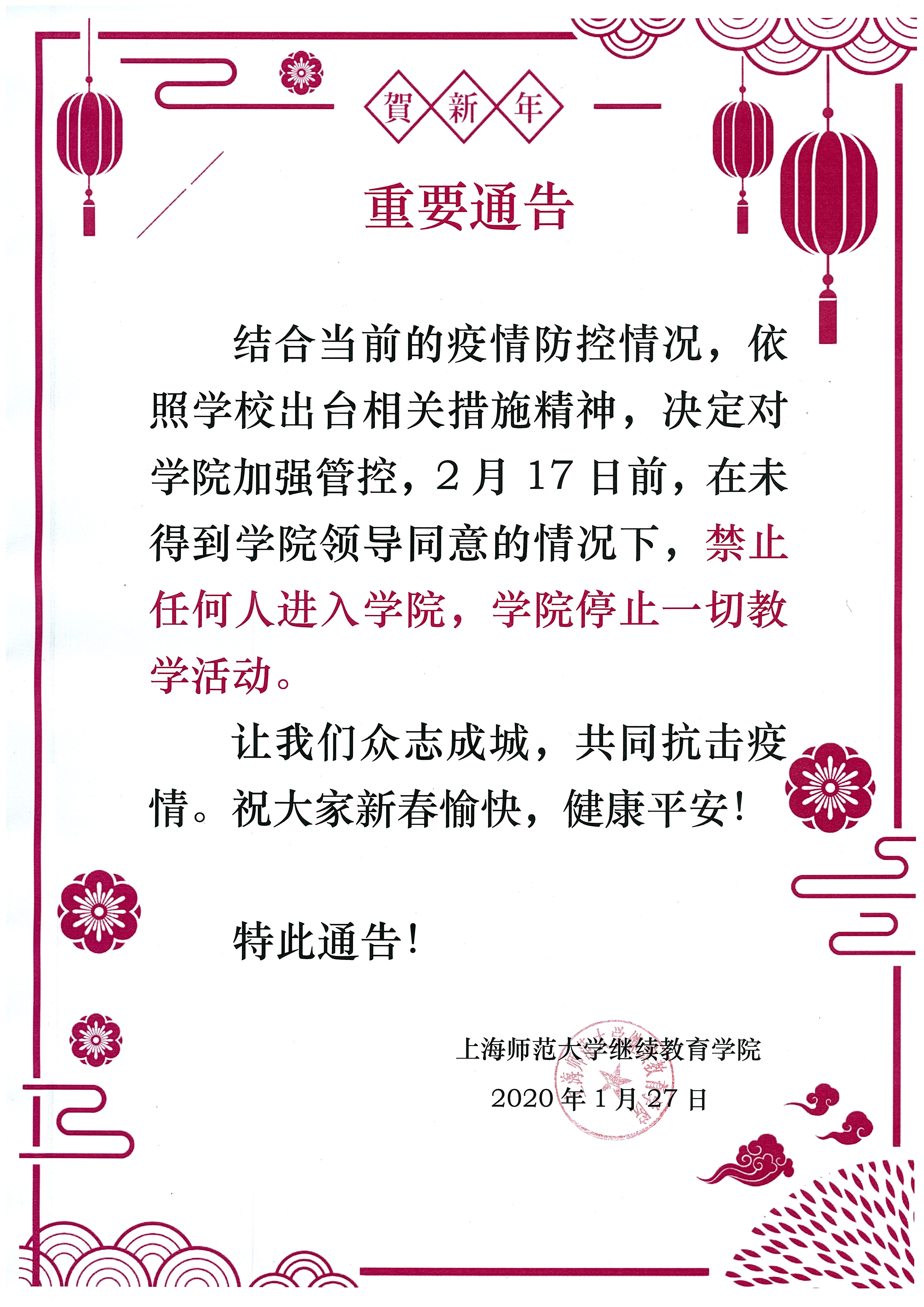 关于做好新型冠状病毒感染肺炎防控工作的通知公告