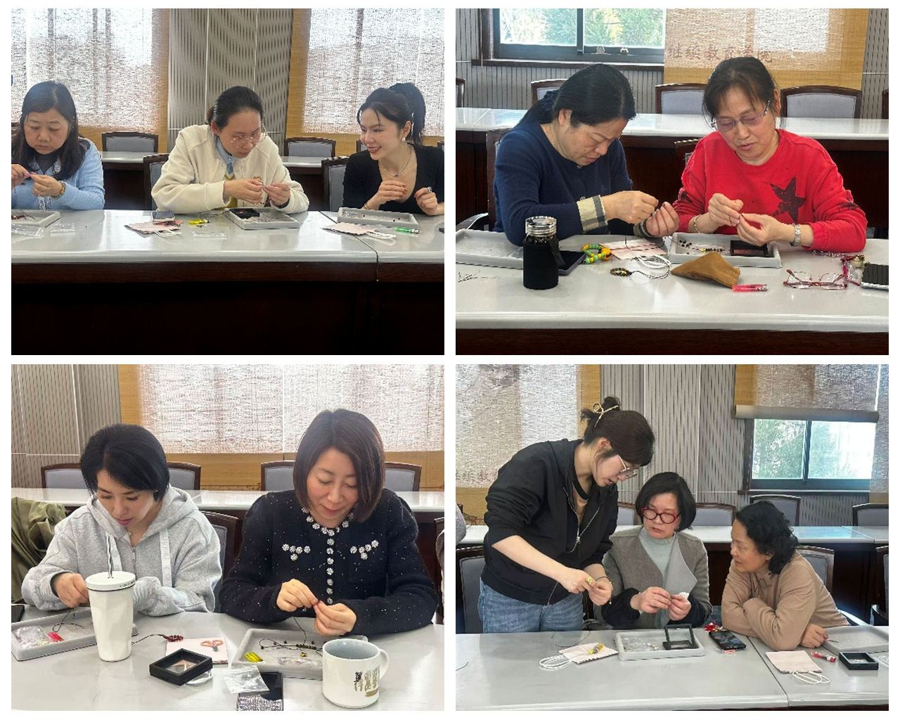 春风送暖,万象更新。为纪念第116个“三八”国际妇女节,丰富学院女性教职工的精神文化生活,提升艺术修养与审美情趣,4月1日下午,44118太阳成城在301会议室举办了以“春日芳华,珠缀福禄”为主题的手作活动。学院全体女教职工欢聚一堂,在欢声笑语中,用灵巧的双手串起寓意吉祥的“福禄”珠串,共同度过了一段温馨而富有创意的美好时光。